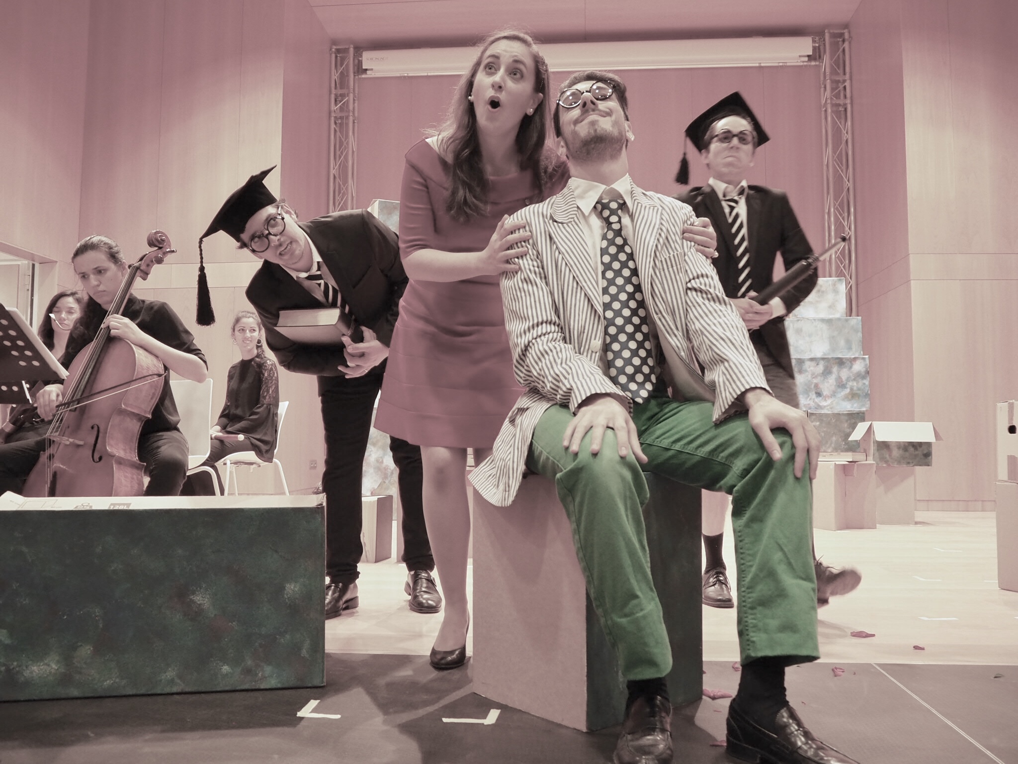 Après des auditions de sélection organisées durant l’hiver 2019 à Strasbourg, Bâle, Paris et Milan, deux semaines de répétitions ont réuni, du 10 au 25 juillet, tout le cast international à Aoste dans le cadre d’une résidence au Conservatoire. La session s’est conclue par deux représentations : le 25 lors du Festival de musique d’Aoste – qui donnait là pour la première fois une représentation d’opéra (répétée, pour cause d’orage diluvien, le lendemain au Conservatoire), puis, le 27, à Novara, dans une salle de musée du XVIe s.