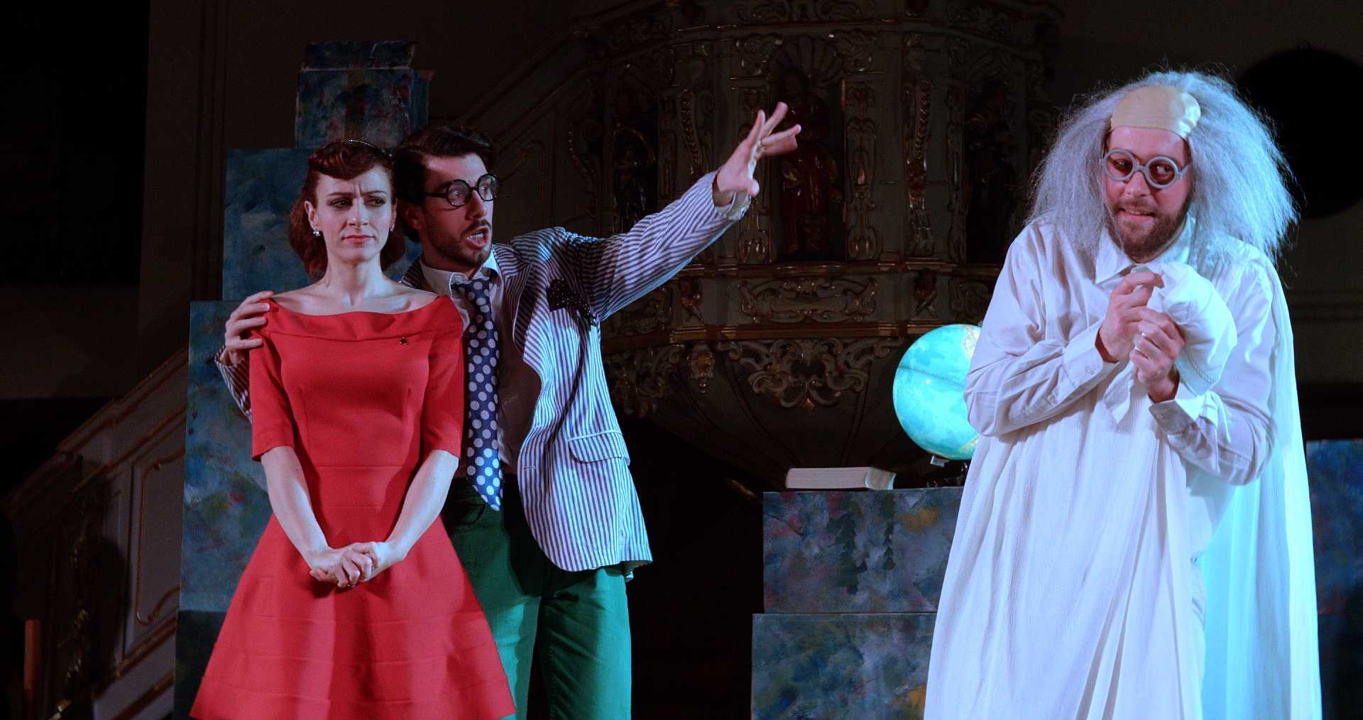 C’était une gageure pour le metteur en scène Carlos Harmuch que de s’adapter à des lieux si divers de style et de dimensions. Mais le dispositif de Génération Baroque, chaque année, se conçoit en fonction de ces données : une extrême adaptabilité, un pied de nez aux conventions de l’opéra classique, une joyeuse impertinence envers les usages établis, l’orchestre sur la scène et participant occasionnellement à l’action.