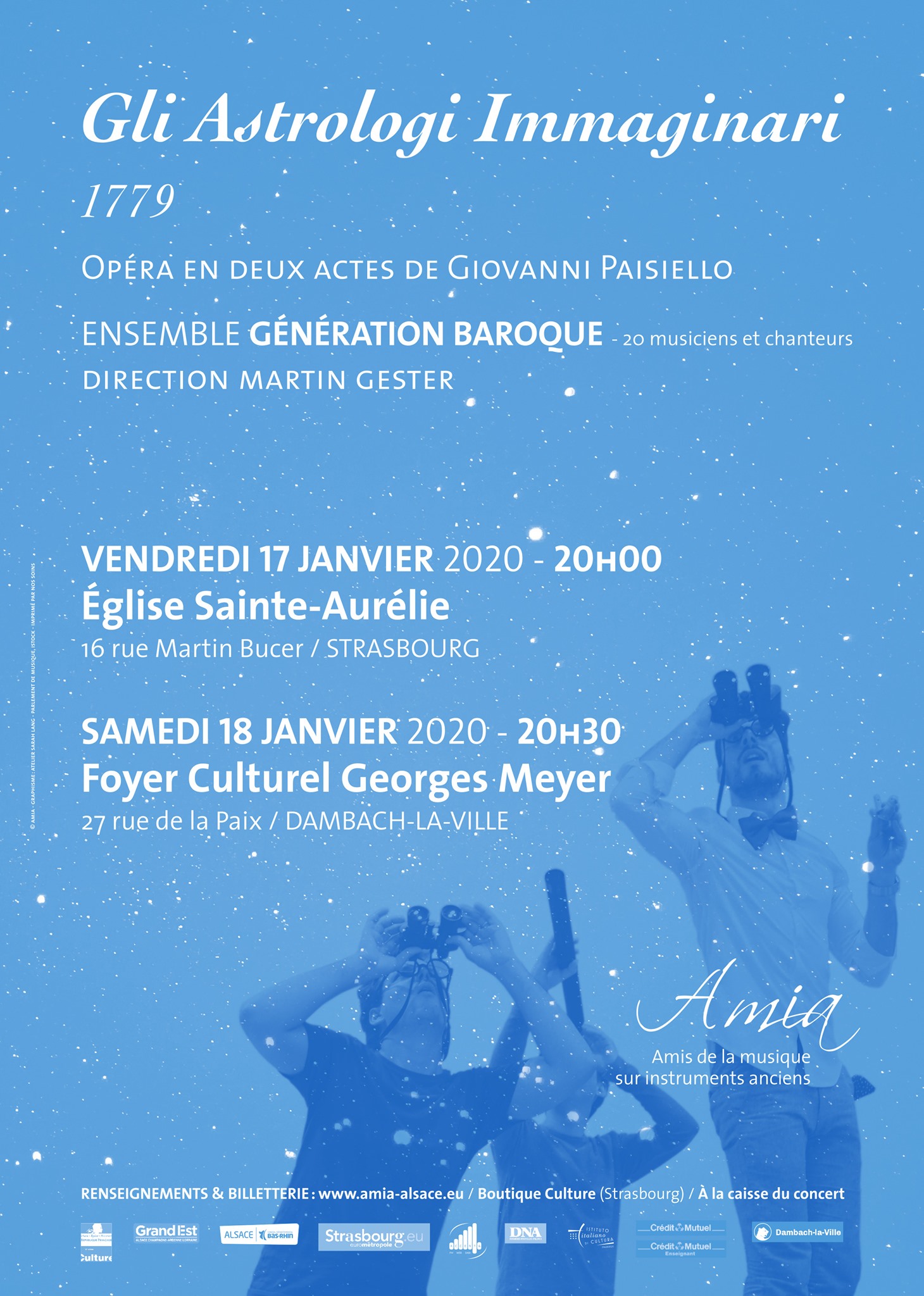 Quatre ans après avoir donné l’Italiana in Londra de Cimarosa, Génération Baroque, en partenariat avec le Conservatoire de Musique du Val d’Aoste, a mis en scène l’un des grands succès de Giovanni Paisiello, « l’autre » grand compositeur napolitain du temps de Mozart, et l’un des plus célèbres compositeurs d’opera buffa italiens de la fin du XVIIIe siècle. Il fut pendant 8 ans maître de chapelle de l’impératrice Catherine II de Russie. C’est durant cette période qu’il composa son œuvre la plus célèbre Il Barbiere di Siviglia d’après Le Barbier de Séville de Beaumarchais. (Un opéra subtil, tout en finesse qui sera représenté des centaines de fois en raison de son exceptionnel sens dramatique et de la beauté des arias – Mozart sera marqué par le Barbier de Paisiello et mettra en musique sa suite avec Les Noces de Figaro). C’est aussi durant son séjour en Russie qu’il composa Gli Astrologi Immaginari.